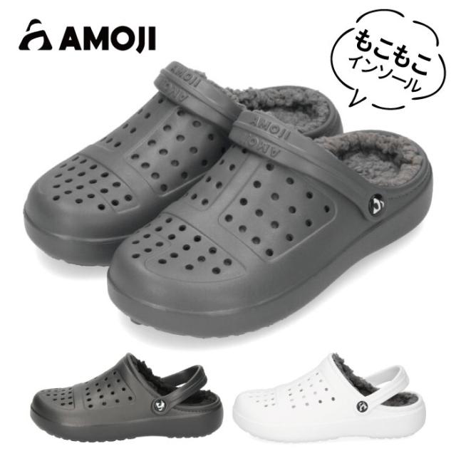 AMOJI アモジ サンダル メンズ レディース D8818 クロッグサンダル もこもこ 防寒 冬用 2way ベルト スリッパ サボ オフィスシューズ アウトドア キャンプ 旅行 軽量 ビジネス 仕事履き