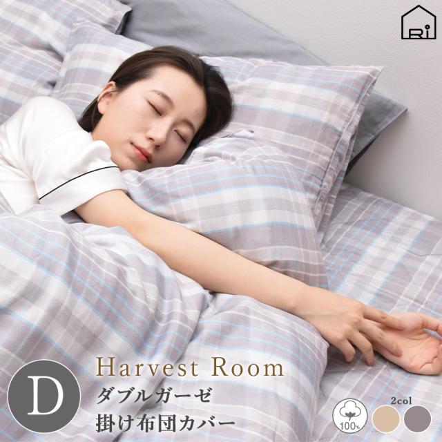 ダブルガーゼ 先染めチェック【掛け布団カバー/ダブル】190×210 HarvestRoom ハーベストルーム 綿100% コットン ガーゼ シーツ 単品 綿 軽い おしゃれ 着脱簡単 寝具 送料無料