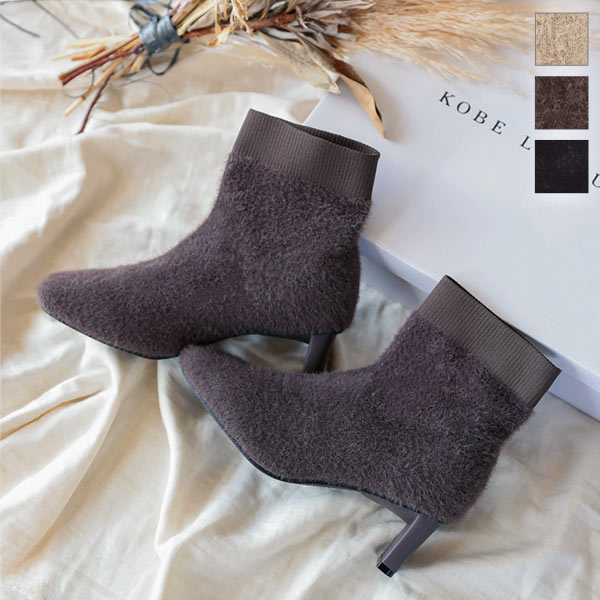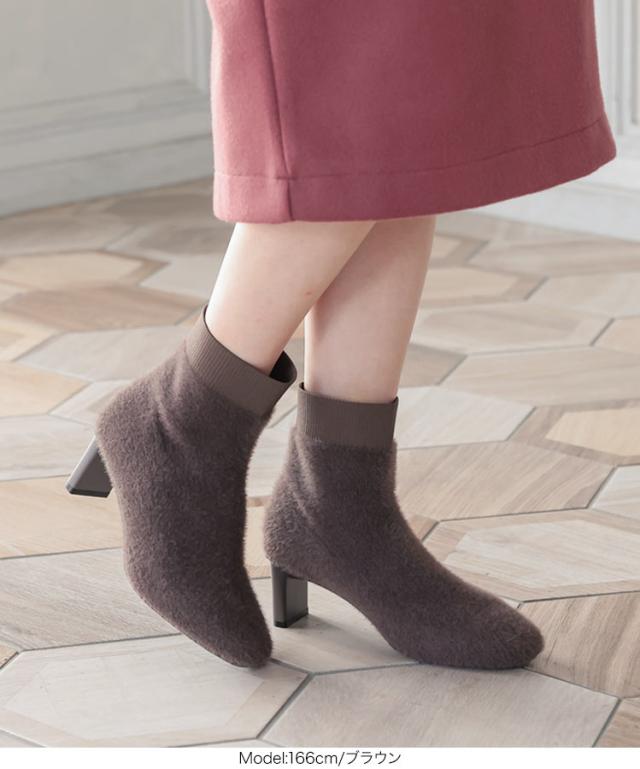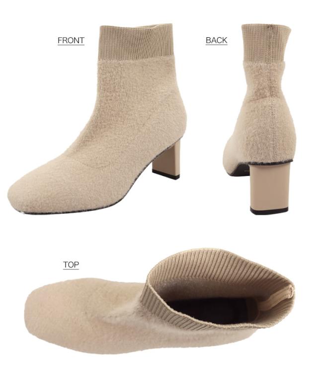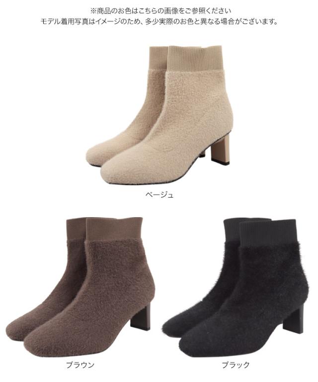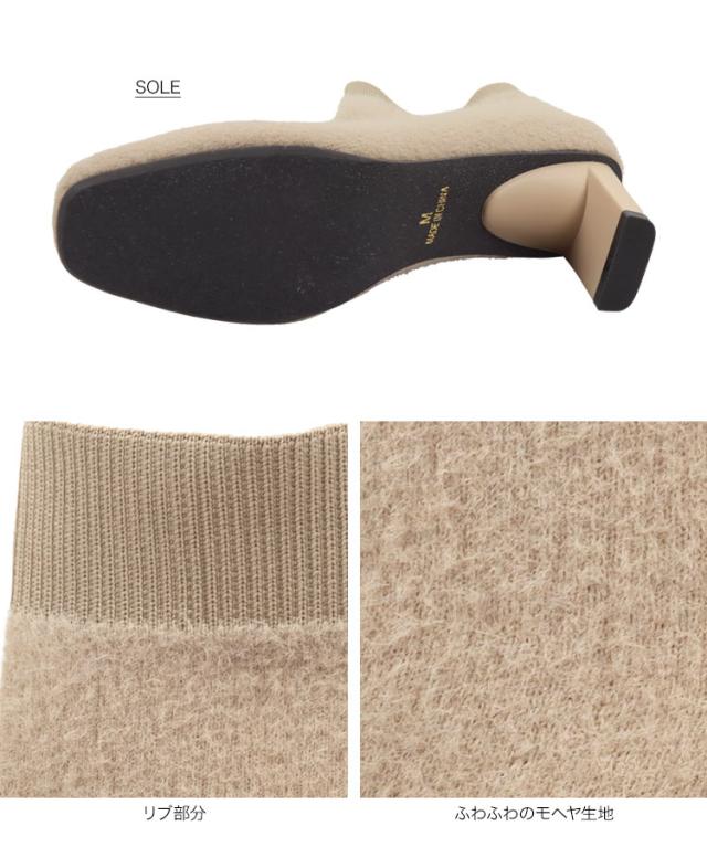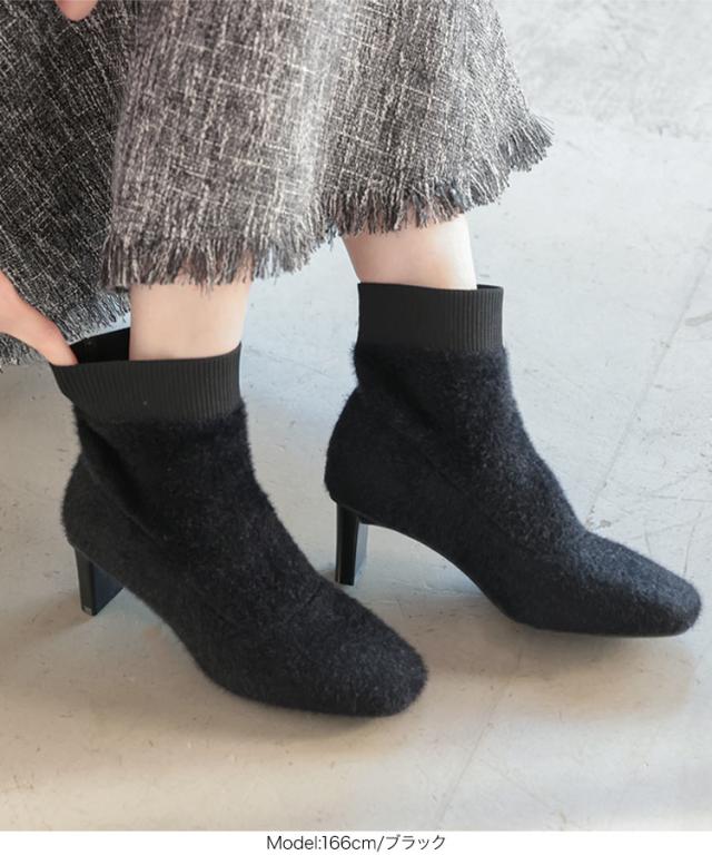 モヘアニットブーツ I2373 入荷済 レディース 靴 シューズ ショート丈 ソックスブーツ 大人可愛い 美脚 黒 秋冬 歩きやすい ショートブーツ 6cmヒール 冬 きれいめ カジュアル リブ スライスヒール 疲れにくい 無地 暖かい