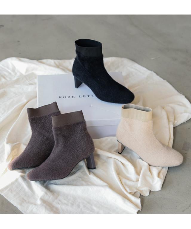 モヘア調ニットでふわふわあったかなニットブーツ。素材が伸びる生地なのでソックスブーツのように足にフィットしつつ伸縮性があり気持ちよく履いていただけます。履き口がリブ調なのでボトムの裾にも響かずレイヤードしてるような印象に。スライスヒールで足元も美脚効果があります。ヒール寸もちょうどいい6cm。ワンピやスカートとの相性が◎なブーツです。【素材・サイズ感】S LLの4サイズ展開。ニュアンスカラーを取り入れた異素材ブーツです。※キャンセル/変更不可※お届けまでの日程について