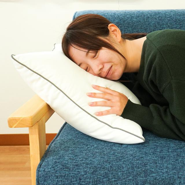 POINT.3 | 羽毛じゃないけど羽毛のよう 羽毛が入った枕のように、ふわっふわのソフトな触り心地。 柔らかいのに適度な弾力があるので、しっかりと頭や身体を支え、サポートしてくれます。ポリエステル素材なので、獣の臭いやアレルギーが不安という方でも安心。