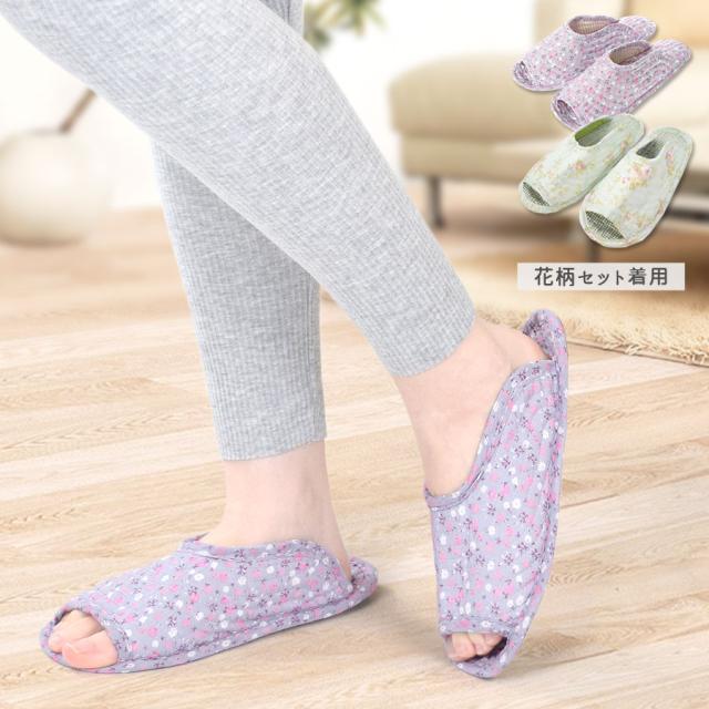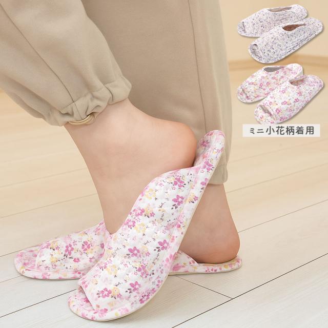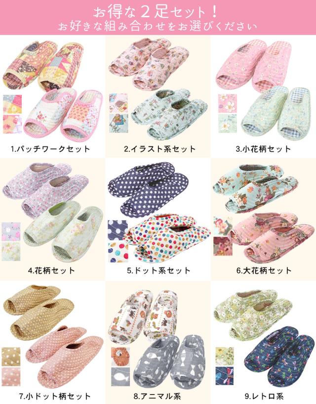 洗える スリッパ 2足セット キルトスリッパ 丸洗いOK 携帯スリッパ ルームシューズ レディース 室内履き 靴下 すべり止め 来客用 旅行 トラベルグッズ 軽い 軽量 薄 キルティング 総柄 花柄 韓国 綿 送料無料 (ki0010)