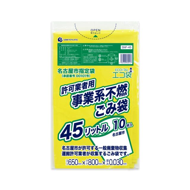 【バラ販売】SNF-45bara 名古屋市事業系許可業者用ごみ袋 45Lリットル 0.030mm厚 不燃 黄色 10枚/ ゴミ袋 ごみ袋