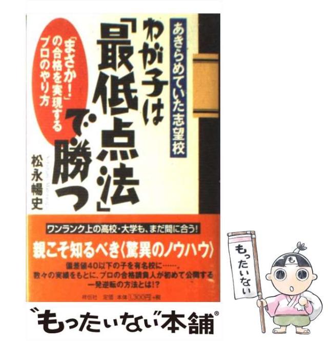 商品名:【中古】 あきらめていた志望校わが子は「最低点法」で勝つ 「まさか!」の合格を実現するプロのやり方 (Non book 愛蔵版) / 松永暢史 / 祥伝社 [単行本]【メール便送料無料】