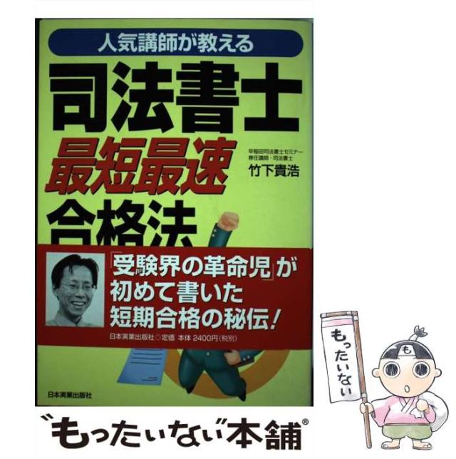 商品名:【中古】 人気講師が教える司法書士最短最速合格法 / 竹下貴浩 / 日本実業出版社 [単行本]【メール便送料無料】