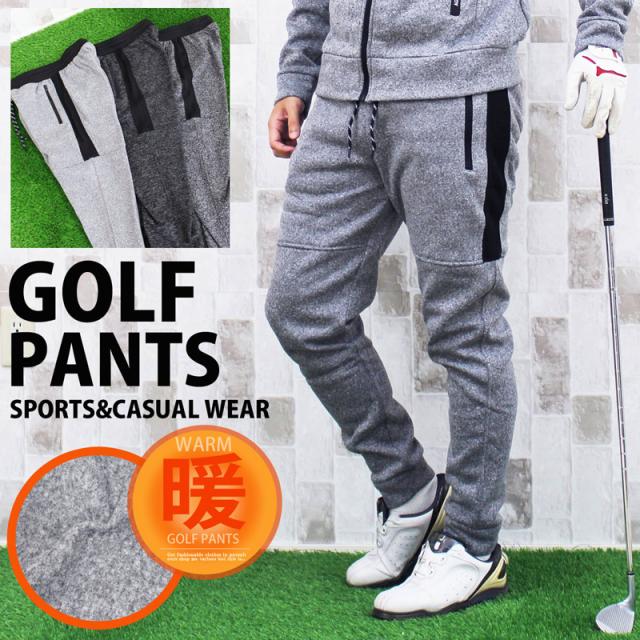 送料無料 ゴルフパンツ メンズ ゴルフウェア 暖かい 裏起毛 ニットフリース ストレッチ ジョガーパンツ イージーパンツ サイドライン あったかい 秋冬 スポーツウェア スウェット