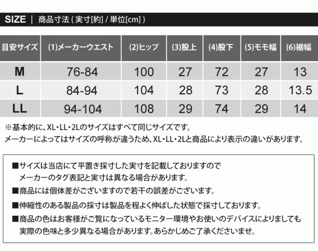 メーカーによってはサイズの呼称が違うため、XL・LL・2Lと商品により表示の違いがあります。