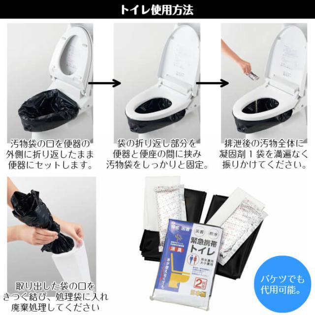 成人の一日平均トイレ回数分をセットした緊急用トイレセット。一人用の防災トイレセットです。