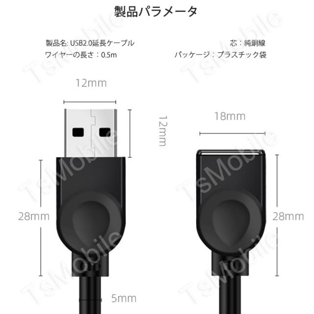 USB延長ケーブル 50cm USB2.0 延長コード0.5メートル USBオスtoメス 充電 データ転送 パソコン テレビ USBハブ カードリーダー ディスクドライバー