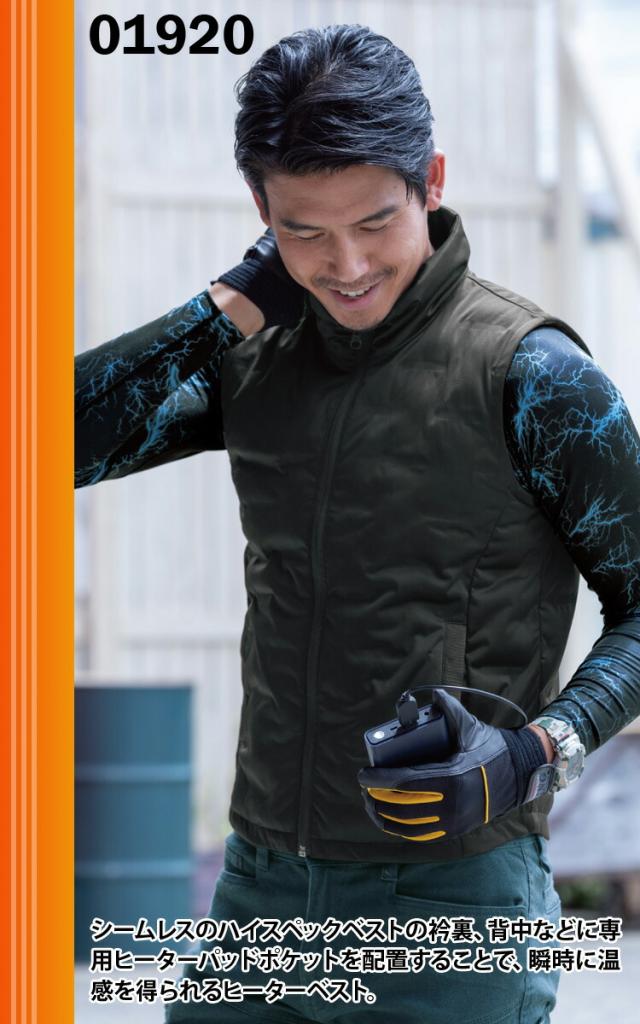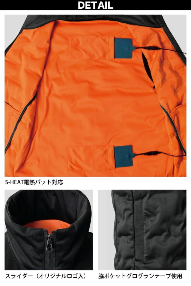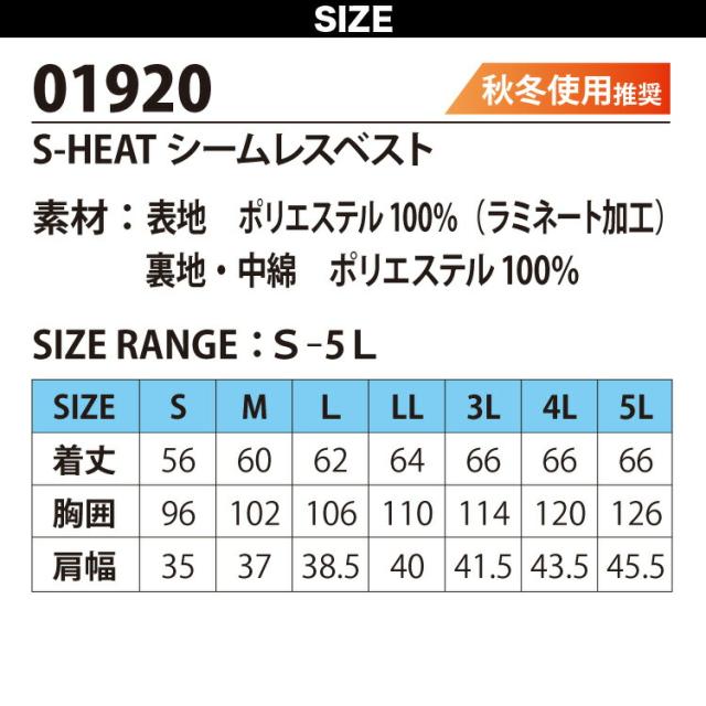 【S-HEAT】シームレスベスト単品 /発熱S-HEAT対応服/作業着/作業服/シンメン/01920 5L 大きいサイズ 保湿性 ヒーターベスト アウトドア 秋冬 メンズ(発熱体別売り)