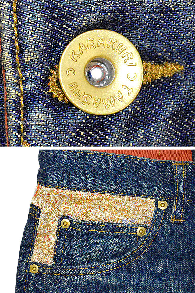 絡繰魂さんから「逆鱗龍刺繍デニムパンツ(213227)」のご紹介です。 今回モチーフの主役に採用されたのは、人気の龍柄。 ジャガード生地を切り替え、アクセントに。 トップボタンには、ブランドロゴが刻印されたオリジナルのものを採用。 | |||||||||||||||||||||||||||||||||||