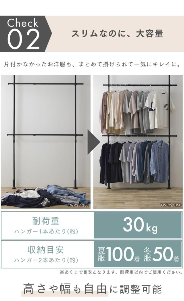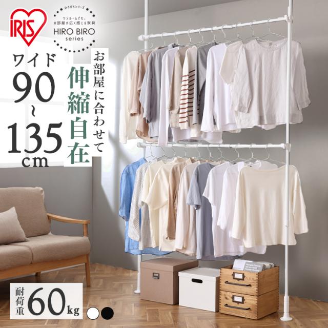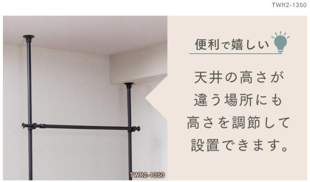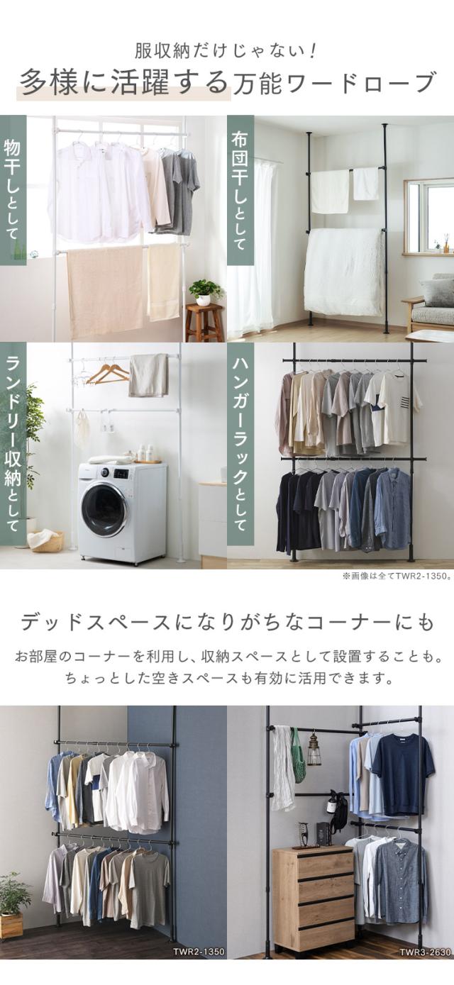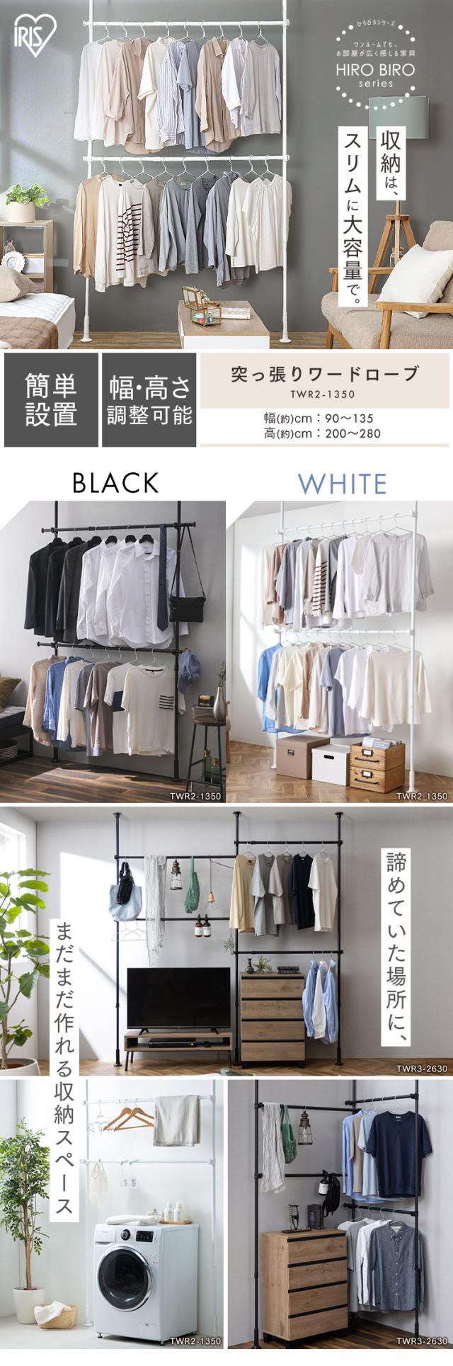 突っ張りワードローブ TWR2-1350 ブラック ホワイト 全2色 ワードローブ 突っ張り棒 棚 突っ張りラック ハンガーラック ハンガースタンド 物干し 伸縮 調整可能 衣類収納 洋服収納 アイリスオーヤマ 送料無料