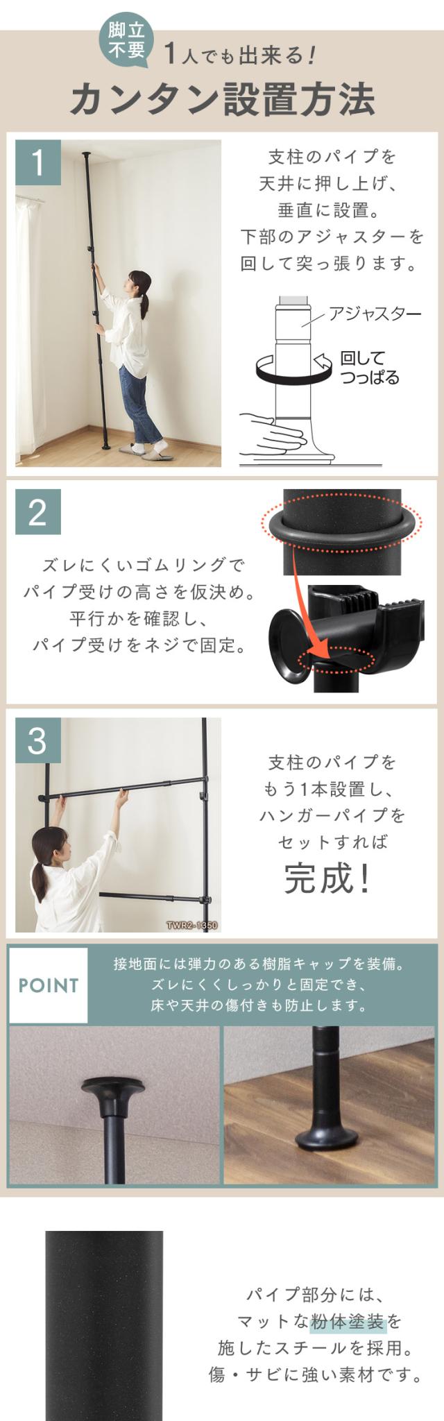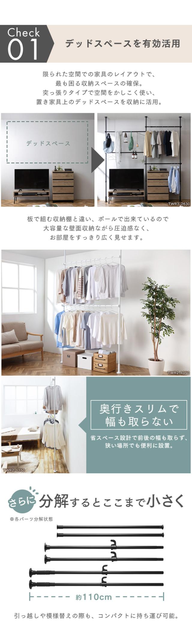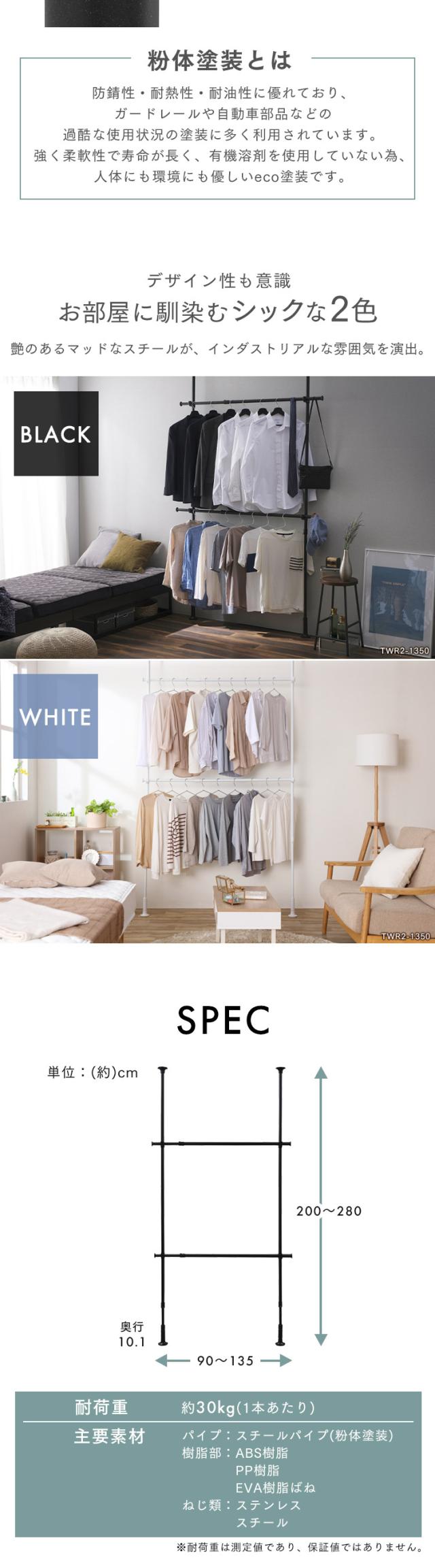 突っ張りワードローブ TWR2-1350 ブラック ホワイト 全2色 ワードローブ 突っ張り棒 棚 突っ張りラック ハンガーラック ハンガースタンド 物干し 伸縮 調整可能 衣類収納 洋服収納 アイリスオーヤマ 送料無料