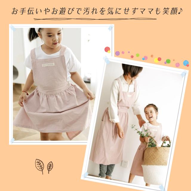 エプロン キッズエプロン 無地 北欧風 子ども フレア スカート かわいい シンプル コットン ナチュラル お揃いエプロン ペア 親子 プレゼント子供 身長100〜120 agesugi_snk
