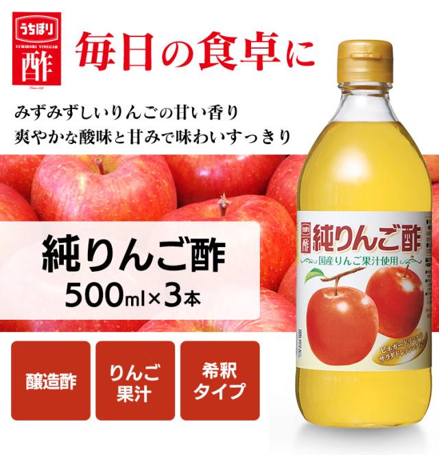 リンゴ酢 りんご酢 純リンゴ酢 内堀醸造 500ml 3本セット 林檎酢 果実酢 味わいスッキリ 爽やかな酸味 りんごの甘い香り みずみずしいりんごの甘さ りんご果汁 酢 お酢 料理 サラダ ドレッシング ドリンク フルーツビネガー マリネ 純りんご酢 *