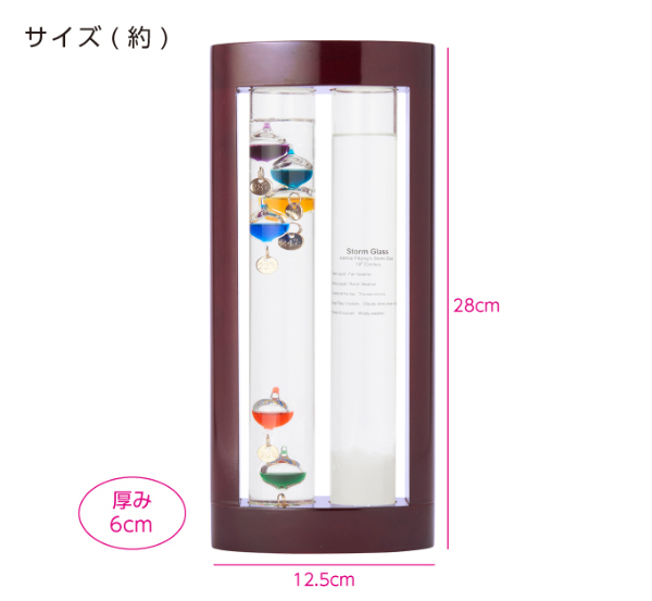 カラフルな球体の浮き沈みで温度がわかる「ガリレオ温度計」と気象の変化で結晶がユニークに変化する「ストームグラス」を1つにセットしたインテリア雑貨。「333-272」は、木のフレームがナチュラルで小さめなタイプ。「333-279」は、艶のあるフレームが高級感を演出する大人好みのタイプ。どちらも人気のインテリアオブジェです。【品番】333-279【商品サイズ(約)】28×12.5×6cm【商品重量(約)】755g【測定可能温度(約)】18〜28度【材質】●フレーム/天然木●温度計/ホウケイ酸ガラス、パラフィンオイル他●ストームグラス/ホウケイ酸ガラス、水、エタノール、天然樟脳他【生産国】中国