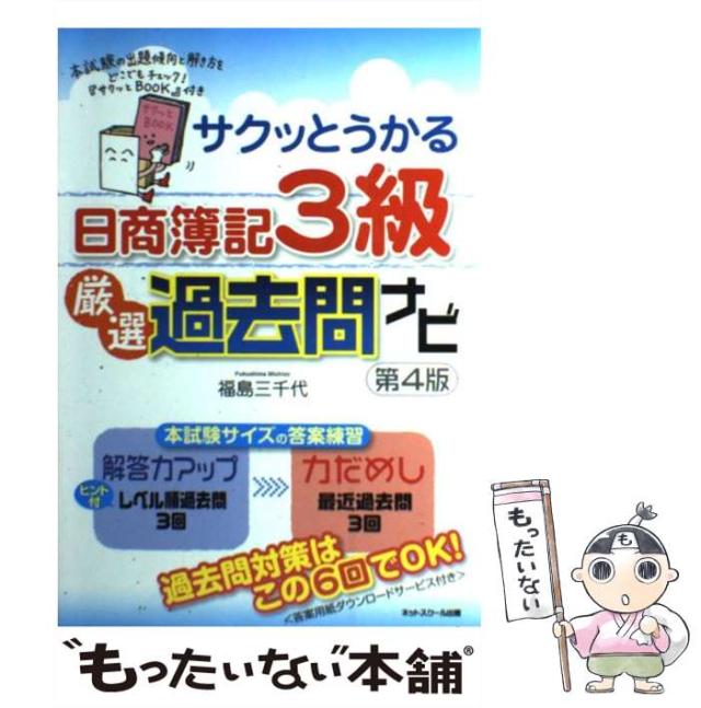 商品名:【中古】 サクッとうかる日商簿記3級厳選過去問ナビ 第4版 / 福島 三千代 / ネットスクール [単行本]【メール便送料無料】
