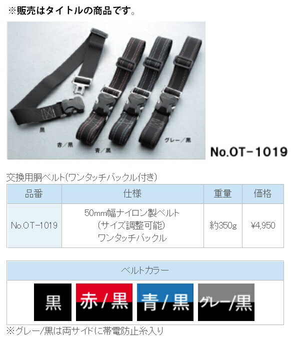 新規格 トーヨー 交換用胴ベルト ベルトカラー青/黒 No.OT-1019 青白ライン 黒地 ワンタッチバックル付 重量約350g TOYO SAFETY 405450 ’