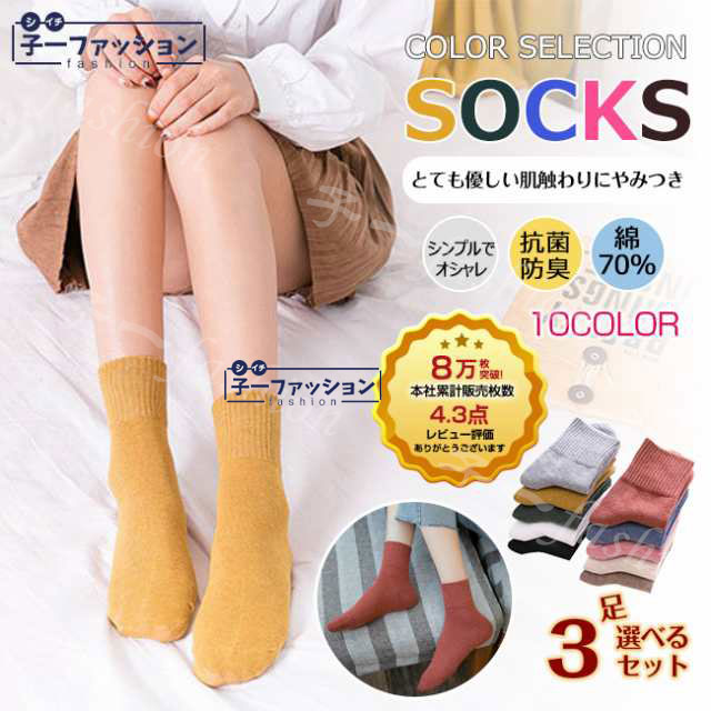 <1,000円!クーポン利用で> [3足セット] 部分即納 ソックスハイ丈 レディース ストレッチ 靴下 伸縮性 リブ 綿 脱げにくい くつ下 くつした カラーソックス 無地 セット 通気性 福袋 送料無料 ポイント消化 かわいい 気持ちいい 高評価 冬新作 春服 秋冬