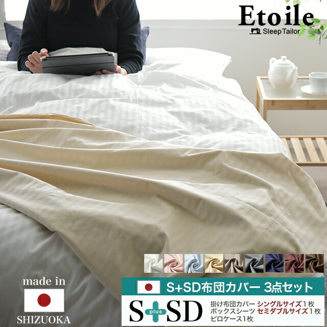業界初の新提案 60サテン 布団カバー3点セット ワイドシングルセット( 掛け布団カバー / 枕カバー / ボックスシーツ ) 綿100% 日本製 送料無料 サテンストライプ 超長綿 ダニ通過0% コットン 北欧 掛けカバー ベッドシーツ