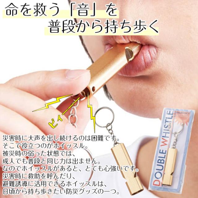 災害時に救助を呼んだり、避難誘導に活用できるホイッスルは、日頃から持ち歩きたい防災グッズの一つ。