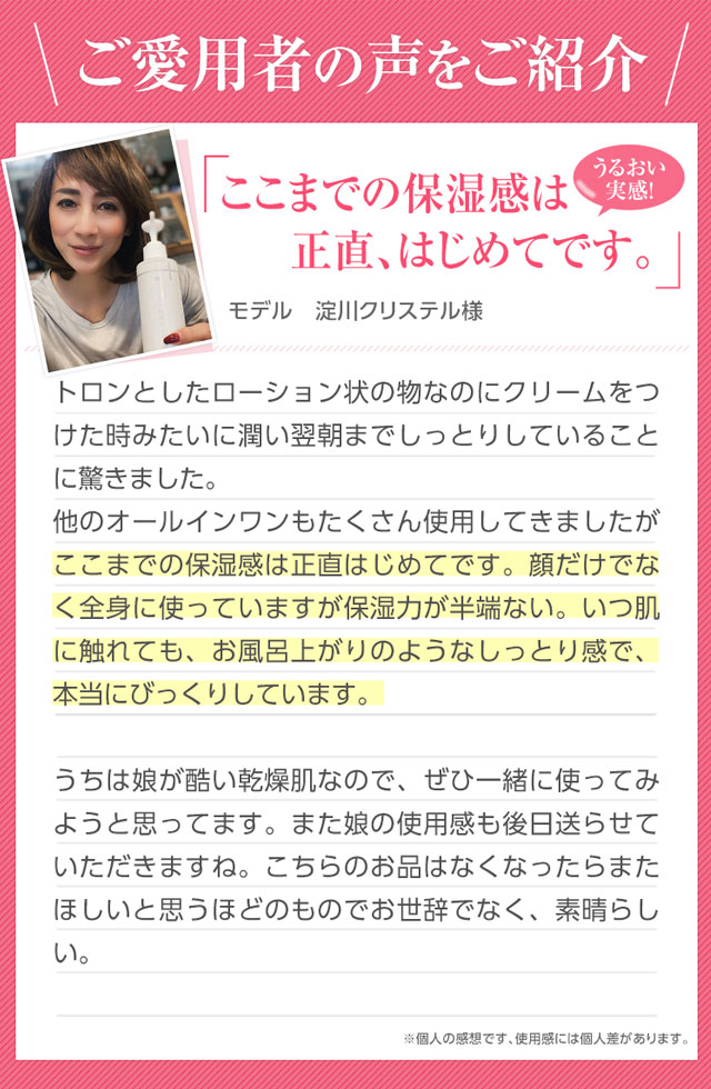 - もうこれは手放せません。カサカサ、粉ふき、ヒリヒリしていた季節の変わり目の肌も すぐにしっとり落ち着きました。ずっと使い続けると思います。