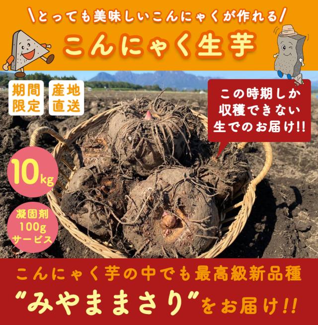 2025年 秋収穫 期間限定 こんにゃく芋 群馬県産 みやままさり 生芋こんにゃく 手作りこんにゃく 産地直送 10kg 凝固剤100gサービス こんにゃくパーク