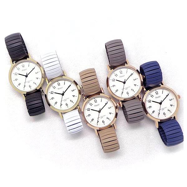 ポスト投函発送 腕時計 レディース ニッケルフリー NTK-278 アラビア数字 ジャバラ エクスパンション ベルト レディース ウオッチ 両面ラバー 金属アレルギー の出にくい ニッケルフリー アレルギー対応 肌に優しい 見やすい 軽量