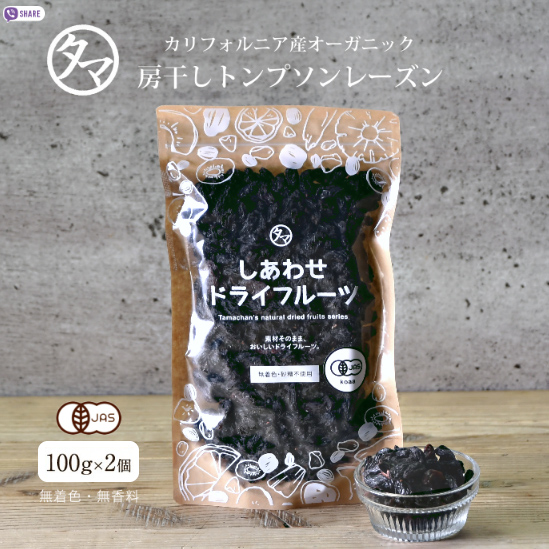 カリフォルニアで有機栽培されたナチュラルトンプソンシードレス種のぶどうから作られた芳醇な風味のレーズン。房干しならではの丸い粒型、ジューシーで穏やかな甘味とシャープな酸味が特徴です。鉄分とポリフェノール豊富な美容食。