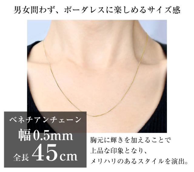 ララクリスティー ネックレス チェーン ゴールド 18金 K18 ベネチアン 幅0.5mm 最長45cm長さ調整可能 重量 約1.2g lc97-0001 ネックレスチェーンムコレクション LARA Christie クリスマス_wp