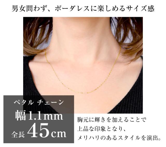 ララクリスティー ネックレス チェーン ゴールド 18金 K18 ペタル 幅1.1mm 最長45cm長さ調整可能 重量 約0.7g lc97-0008 ネックレスチェーンムコレクション LARA Christie クリスマス_wp