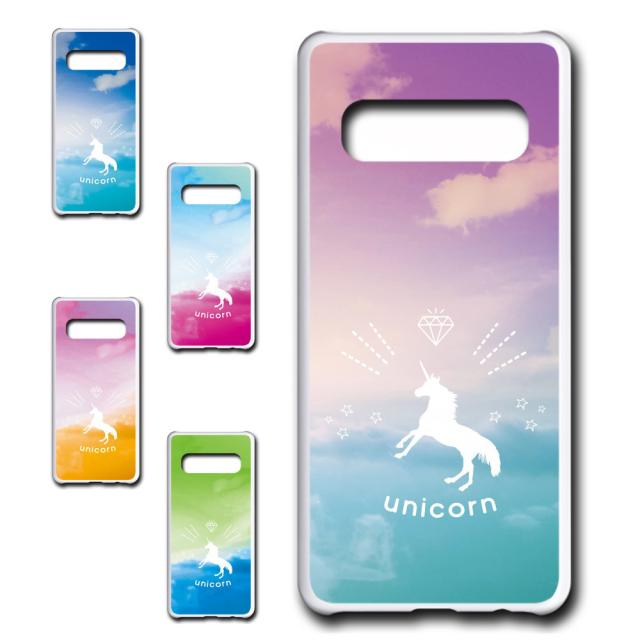 スマホケース Galaxy S10 SCV41 ギャラクシー エステン エスシーブイヨンイチ SC-03L きれい おしゃれ ファンシー ユニコーン 白色 オシャレ 映え 携帯カバー ケース プリントケース 耐衝撃 けーす ハードケース スマホケース