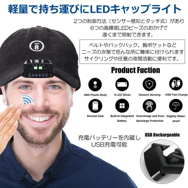 多機能のクリップ式帽子ライトは、ベルトやバックパック、