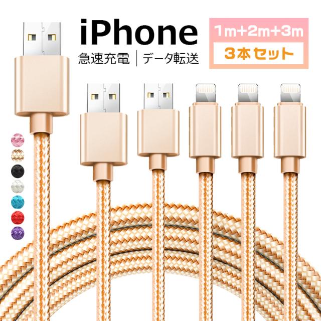【3本セット】充電器 iphone ケーブル 1M+2M+3M ケーブル lightning ライトニングケーブル USB ケーブル iPhone 13 mini Pro Max iPhone 12 mini Pro Max iPhone se 2020 iPhone 11 iPad mini Air 急速 断線防止 データ転送 1000円 ぽっきり 送料無料
