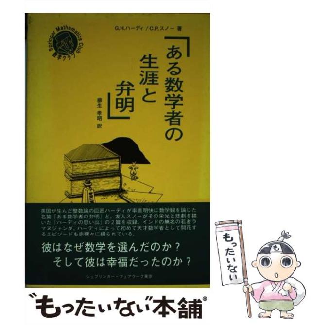 商品名:【中古】 ある数学者の生涯と弁明 (シュプリンガー数学クラブ) / G.H.ハーディ C.P.スノー、柳生孝昭 / シュプリンガー・フェアラーク東京 [単行本]【メール便送料無料】
