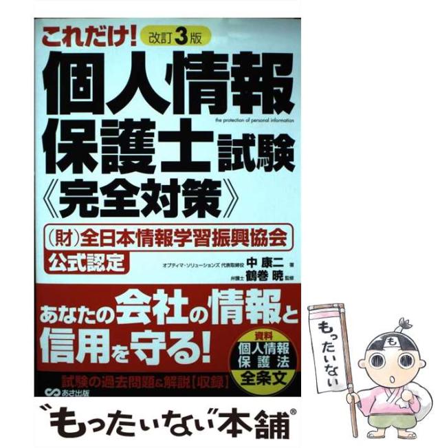 【中古】 これだけ!個人情報保護士試験《完全対策》 〈財〉全日本情報学習振興協会公式認定 改訂3版 / 中康二、鶴巻暁 / あさ出版 [単行本(ソフトカバー)]【メール便送料無料】