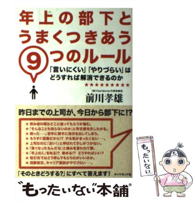 【中古】 年上の部下とうまくつきあう9つのルール 「言いにくい」「やりづらい」はどうすれば解消できるのか / 前川孝雄、前川 タカオ / [単行本(ソフトカバー)]【メール便送料無料】