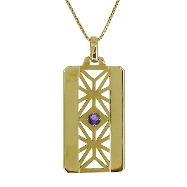 メンズ ネックレス 麻の葉 アメジスト 2月誕生石 10金 和風 ペンダント