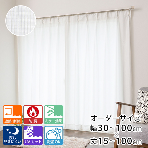 カーテン レースカーテン オーダー 防炎 断熱カーテン 省エネ 透けにくい ミラーレース 「トリコットスクエア」 幅30-100cm 丈15-100cm