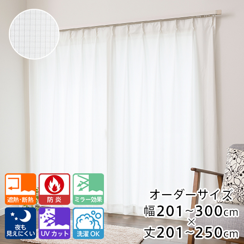 カーテン レースカーテン オーダー 防炎 断熱カーテン 省エネ 透けにくい ミラーレース 「トリコットスクエア」 幅201-300cm 丈201-250cm