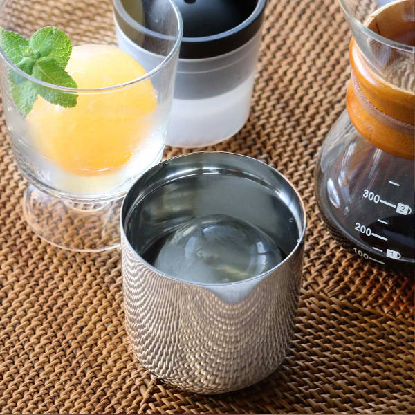 ご家庭で簡単に直径6cmの大きな丸氷をつくることができる製氷器とタンブラーのセット。丸い氷は四角い氷よりも、表面積が小さいので、氷が溶けてしまうことを気にせず長く楽しめます。ご自宅でバーの雰囲気を味わうことができます。