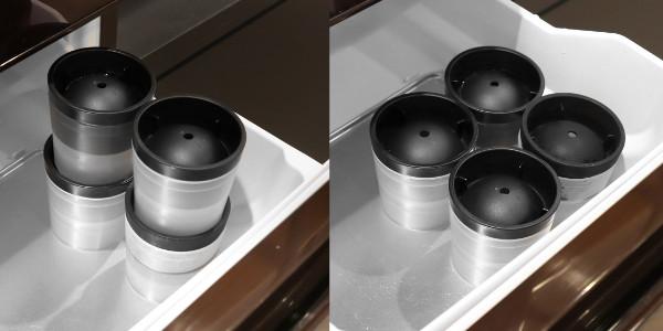 たくさん氷を作りたい時は、製氷器だけ買い足して頂くことができます。2つ使用しても重ねられる設計なので、製氷時に場所を取らず、冷凍庫内のスペースを有効に活用できます。