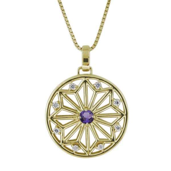 2月誕生石アメジストを使用した18金製の、麻の葉模様のメンズネックレス(ペンダント)です。