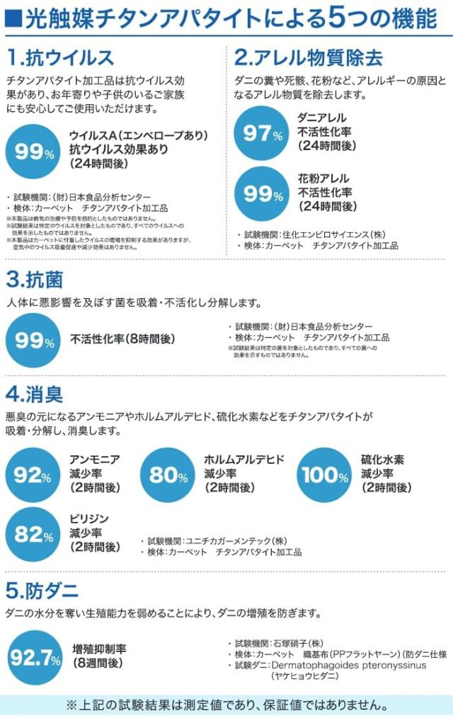 ◆機能:消臭、防ダニ、抗菌、抗ウィルス、抗アレルゲン、ホットカーペット・床暖対応