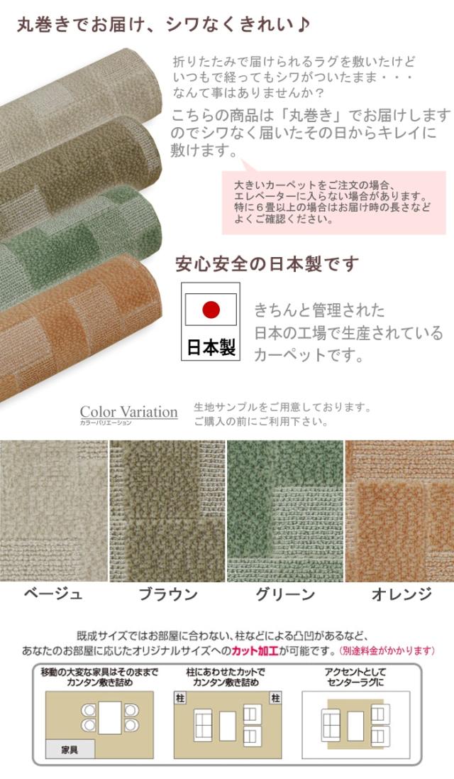 カーペット 3畳 ラグ ルナ (K) 江戸間3畳 約176×261cm ラグマット ウィルス対策 感染対策 消臭 おしゃれ じゅうたん 絨毯 抗ウィルス 抗アレルゲン 江戸間 三畳 3帖 ホットカーペット対応 日本製 防ダニ 抗菌 シンプル 幾何柄 丸巻き 引っ越し 新生活