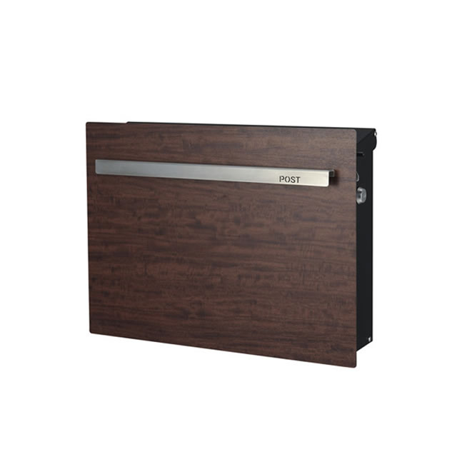 木目に深みを与えるステンレスのライン。木目テクスチャーにステンレスの取手やプレートがキラリとアクセントになるノイエキューブ木目タイプです。高級感漂う落ち着きのある表情がハイセンスで印象的なエントランスを演出してくれます。日本人デザイナーによる日本の郵便事情にあった使い勝手のよいシンプルなデザインです。