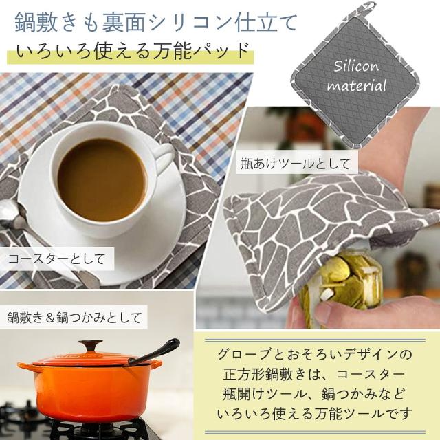 送料無料 ミトン 鍋つかみ 鍋敷き セット シリコン おしゃれ
