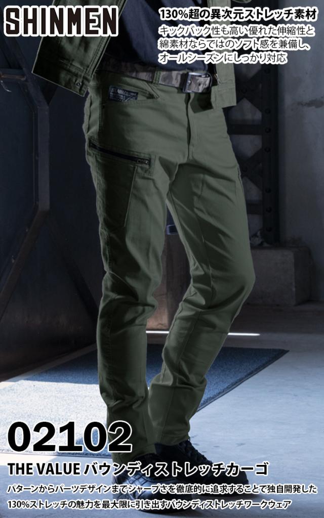 シンメン SHINMEN バウンディ ストレッチ 上下セット 02100/02102 ワークジャケット/カーゴパンツ 通年 作業服 作業着 秋冬 2021年 新色 かっこいい メンズ