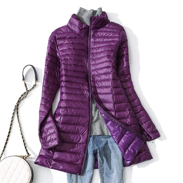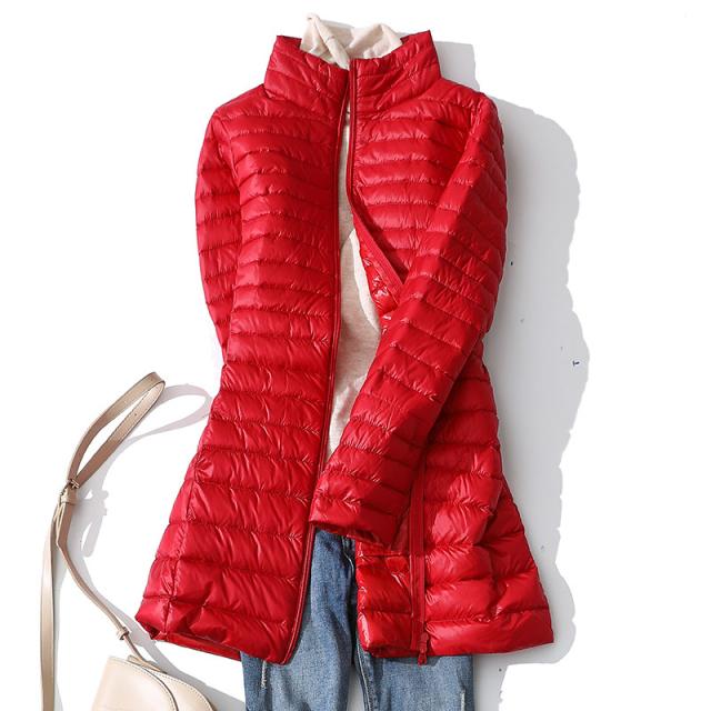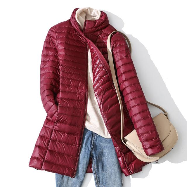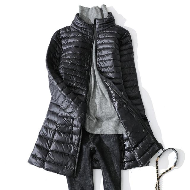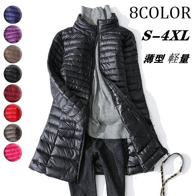 ダウンジャケット レディース ブルゾン ライトダウン ライトアウター スタンドカラー 軽量 ロング丈ダウンコート秋冬 防寒 大きいサイズあり おしゃれ 新作