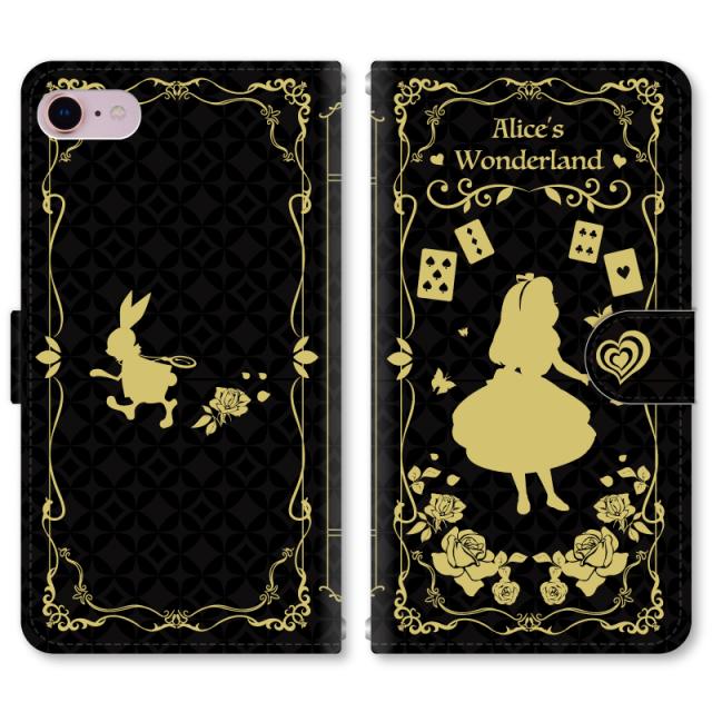 スマホケース 手帳型 iPhone13 iPhoneSE2 アイフォン 8 aquos sense GooglePixel xperia galaxyなど多機種制作対応 m786_アリス[ブラック]
